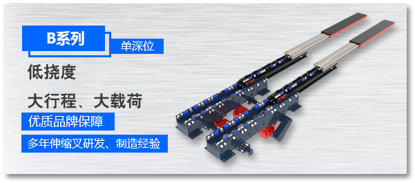 双伸位堆垛机采用了多级双伸位货叉,通过行程倍增实行大距离伸出,实现巷道内单边双排货架存取货物,但由于货叉悬臂加长,导致力矩相应增加,控制货叉的下挠量成为技术关键,同时也是技术难题。